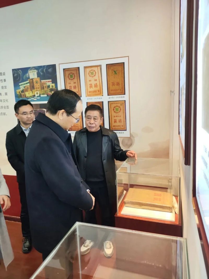而后,覃主任參觀了湘益茶文化博物館,了解了茯磚茶的歷史及文化。茯磚茶的傳播由益陽、安化,途經(jīng)陜西涇陽,分別向北、向東形成了古絲綢之路與茶馬古道。茯磚茶在宋、元、明、清時期更是分別作為附茶和官茶而存在,更有朱元璋大義滅親,賜死走私官茶的駙馬歐陽倫的典故,這些生動形象的歷史故事都充分展示了茯磚茶在當(dāng)時是作為中央治理邊疆地區(qū)的重要手段而存在。此外,茯磚茶對于邊疆人民更是意義非凡,無論是婚喪嫁娶,還是日常飲用、過節(jié)送禮,茯磚茶都是必不可少的一環(huán),已經(jīng)深深融入了邊疆人民生活的方方面面。