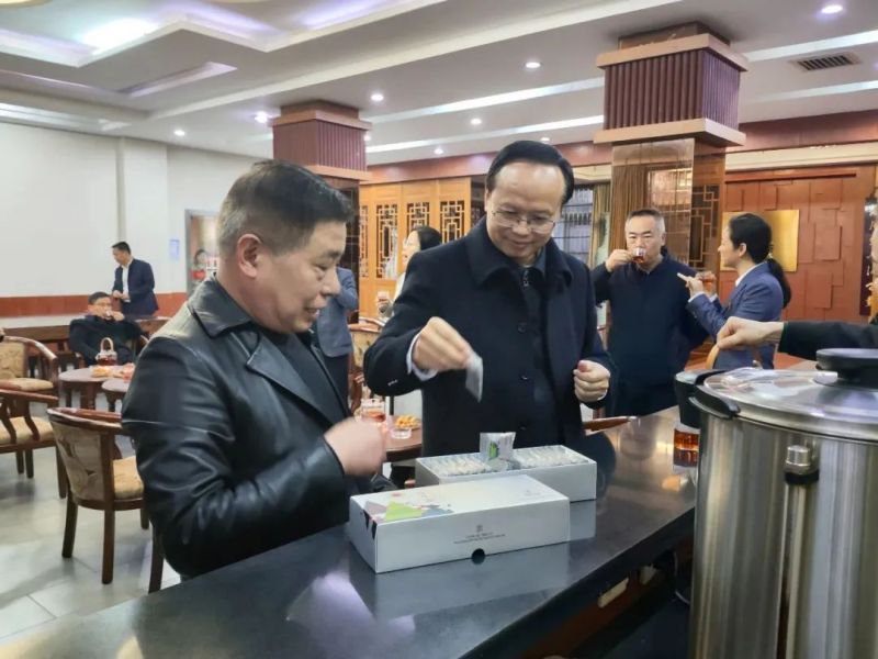 覃主任品嘗湘益茯茶,對益生源茯茶大為稱贊