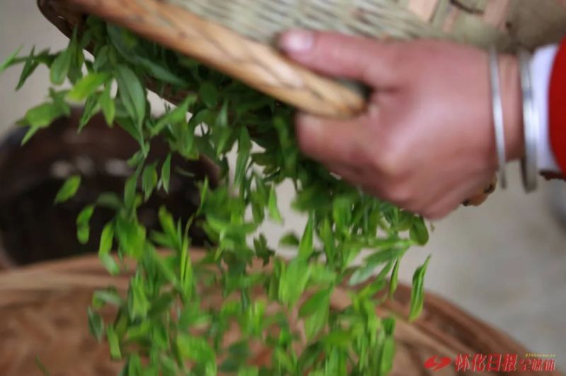(當(dāng)天采下的嫩芽在簸箕內(nèi)攤開(kāi)、晾干)