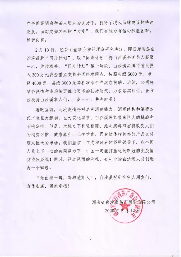 白沙溪品牌“同舟計(jì)劃”首批300萬支持終端網(wǎng)點(diǎn)
