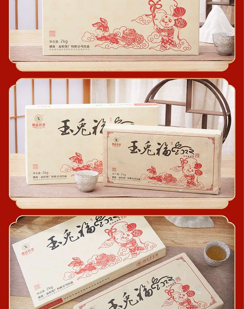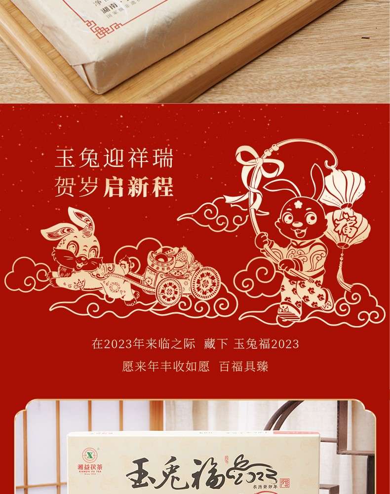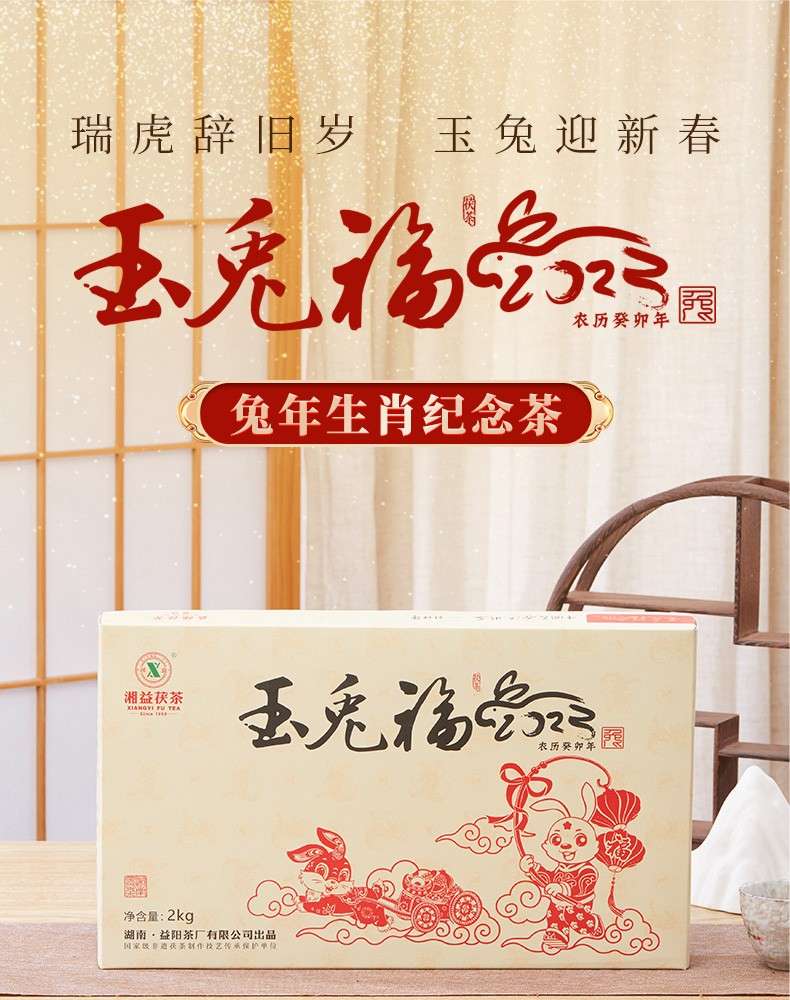 湘益獲茶2023年兔年生肖紀(jì)念茶玉免福2kg湖南正宗安化黑茶獲磚茶
