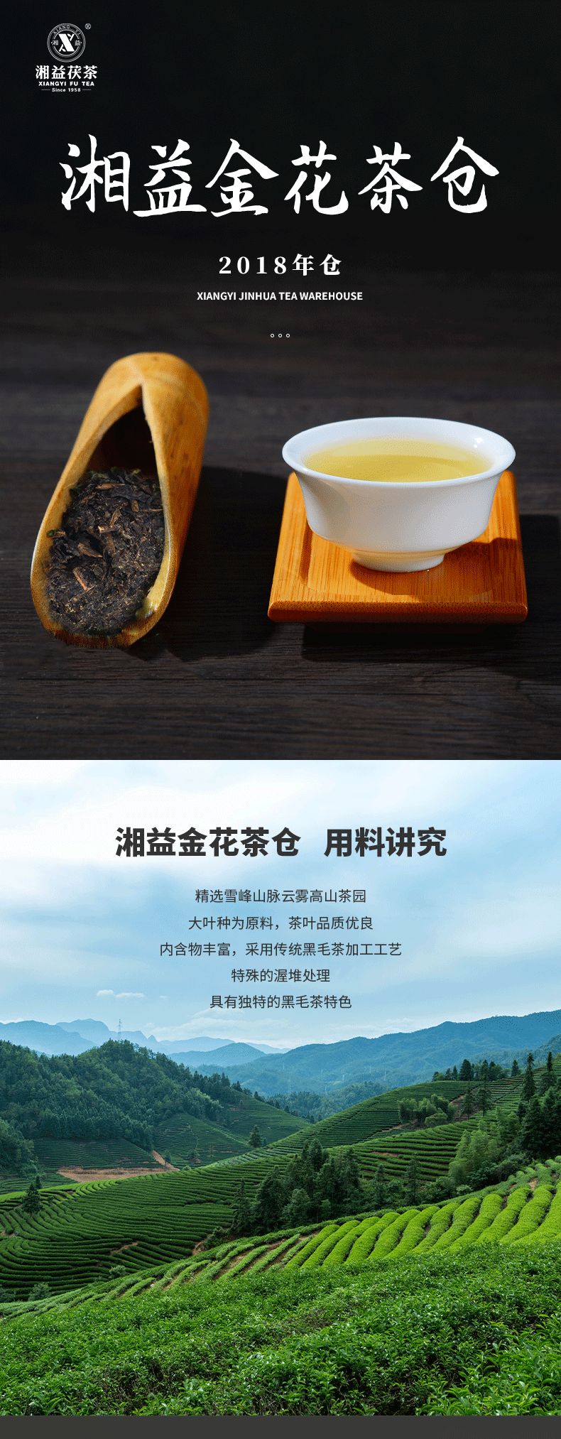 湘益金花茶倉(cāng)2018倉(cāng)茯磚茶930g