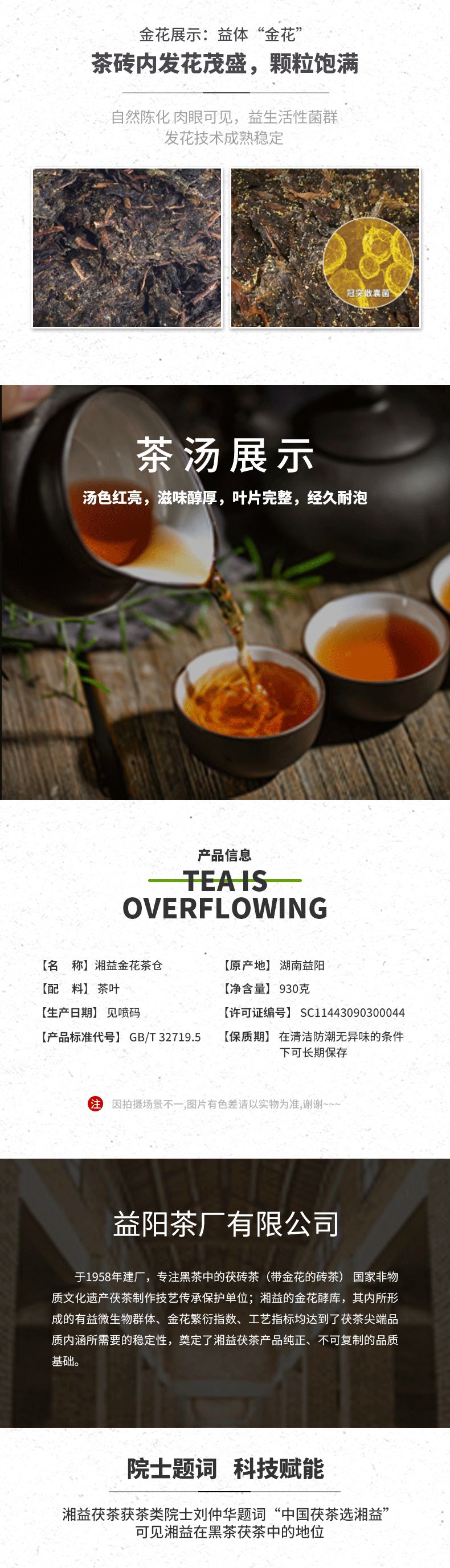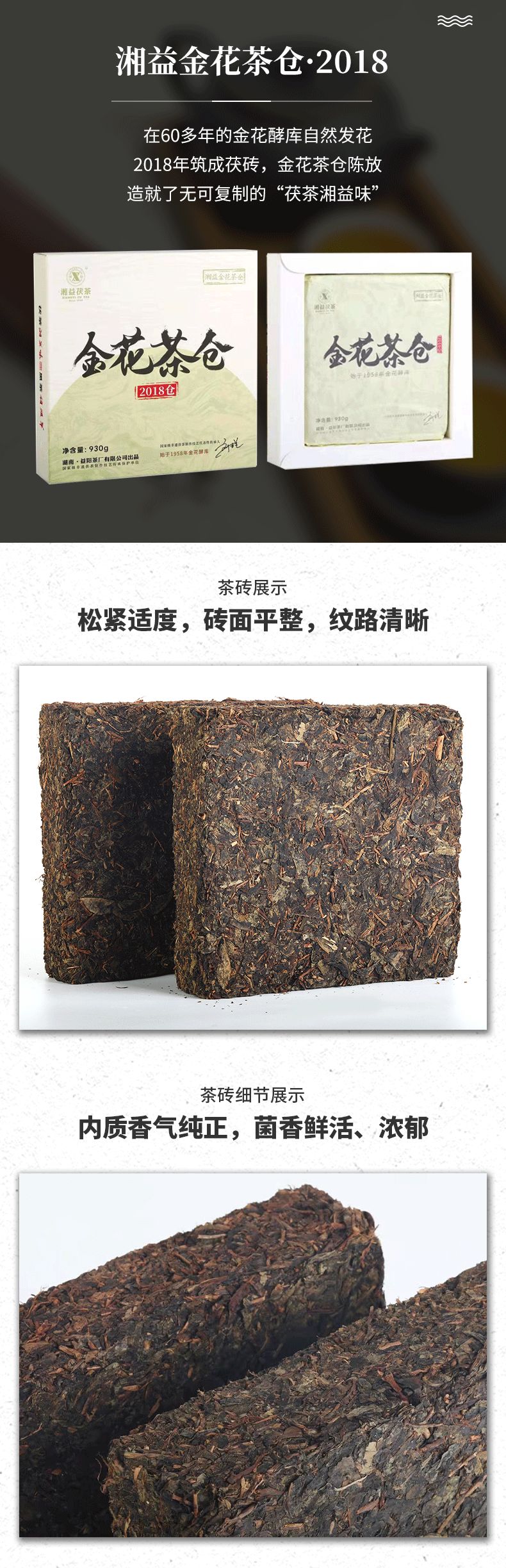 • 湘益金花茶倉(cāng)2018倉(cāng)茯磚茶930g